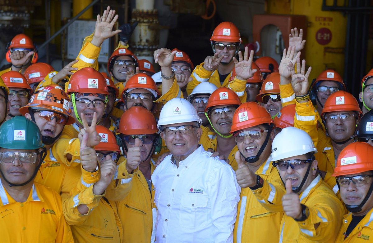 Archivo - El presidente de México, Andrés Manuel López Obrador, con trabajadores de Pemex - Especial/NOTIMEX/dpa - Archivo
