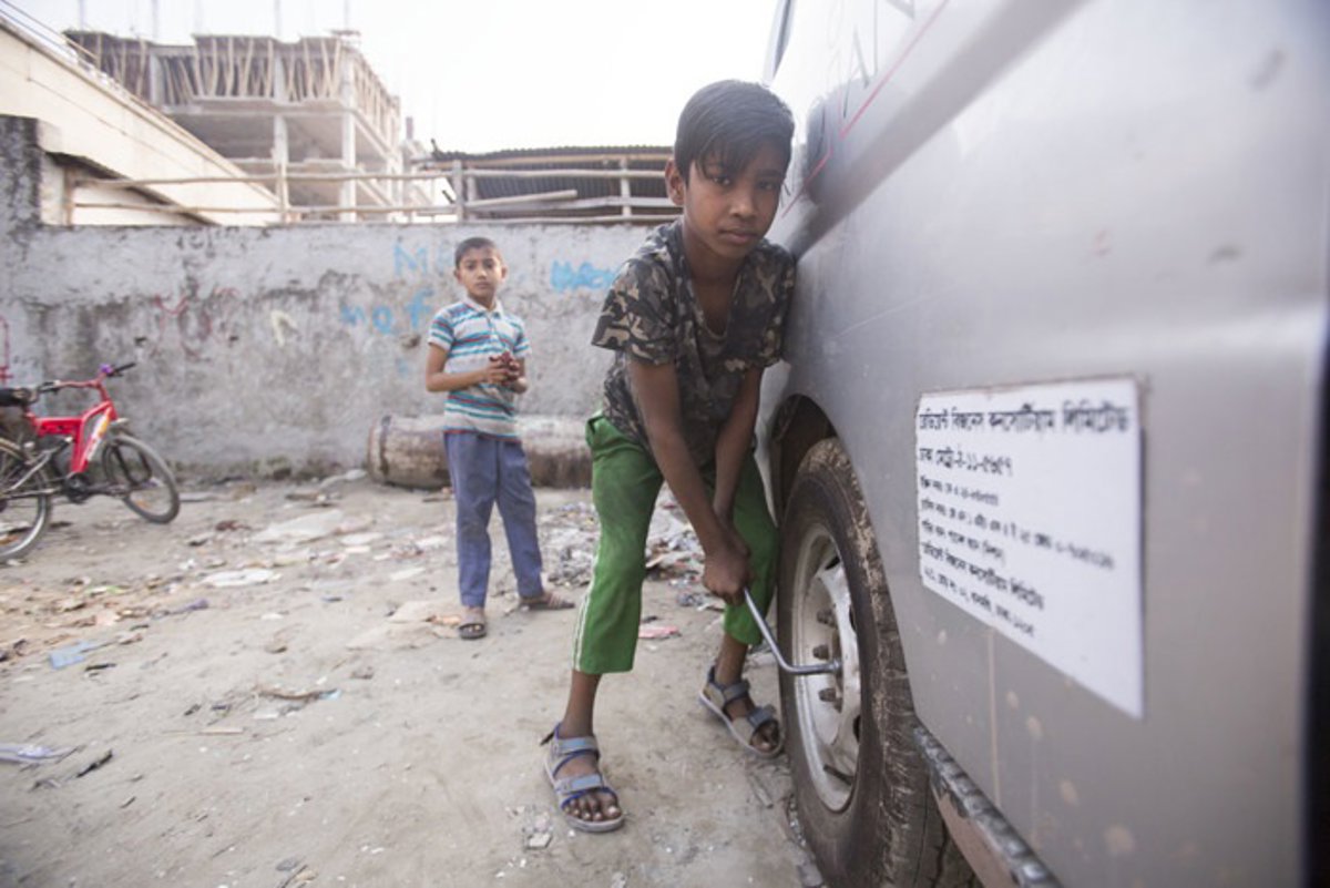 Ripón trabajando en un taller mecánico en Bangladés. - EDUCO