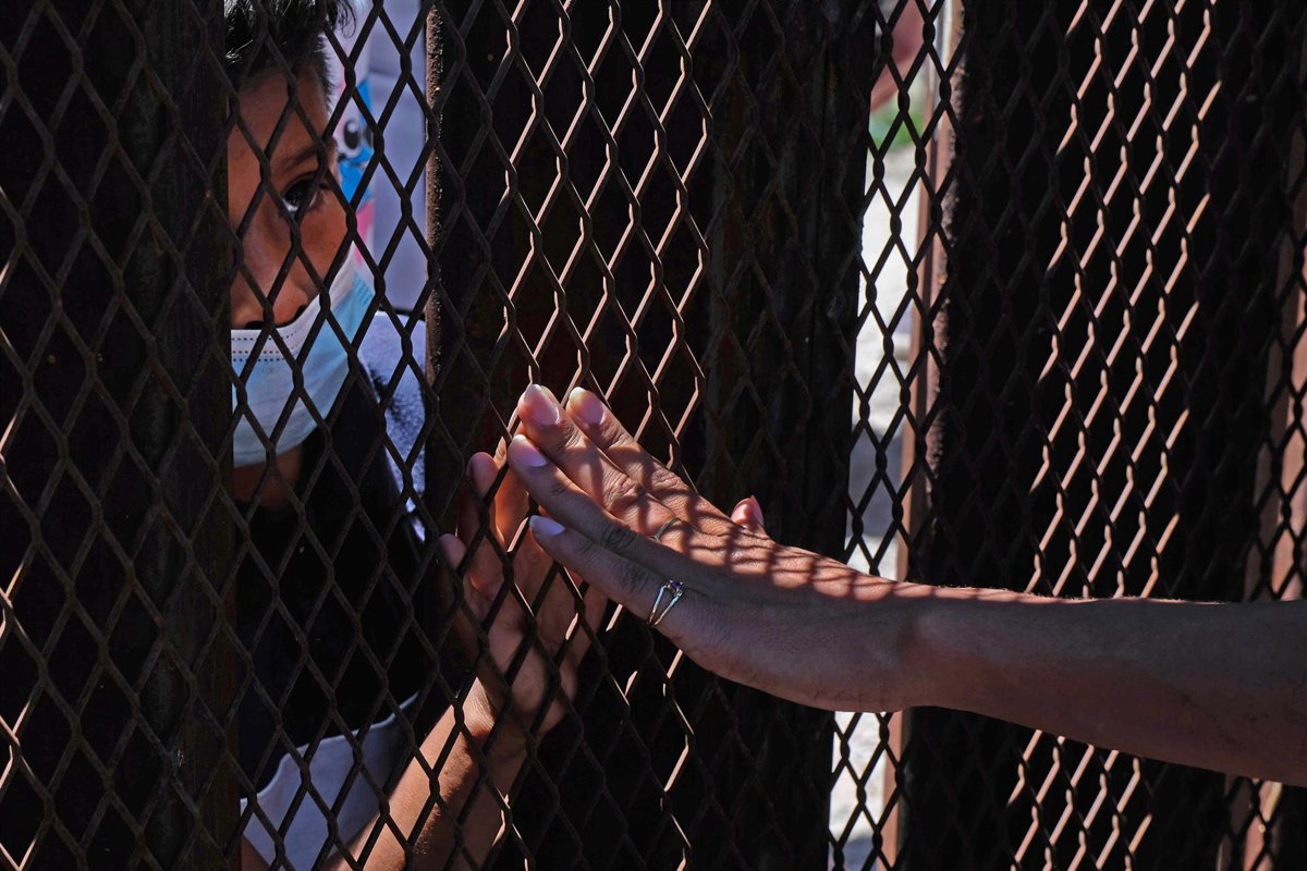 Archivo - 30 April 2021, US, Nogales: A supporter touches the hand of a young asylum-seeking migrant from behind the fence at border wall separating the United States and Mexico. - Christopher Brown/ZUMA Wire/dpa - Archivo
