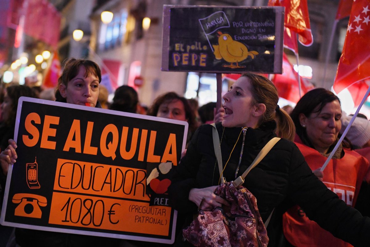 Archivo - Decenas de personas se manifiestan durante las jornadas de huelga de CCOO sobre la precariedad laboral de las trabajadoras de Educación Infantil en España, en la Puerta del Sol, a 8 de noviembre de 2023, en Madrid (España). - Fernando Sánchez - Europa Press - Archivo