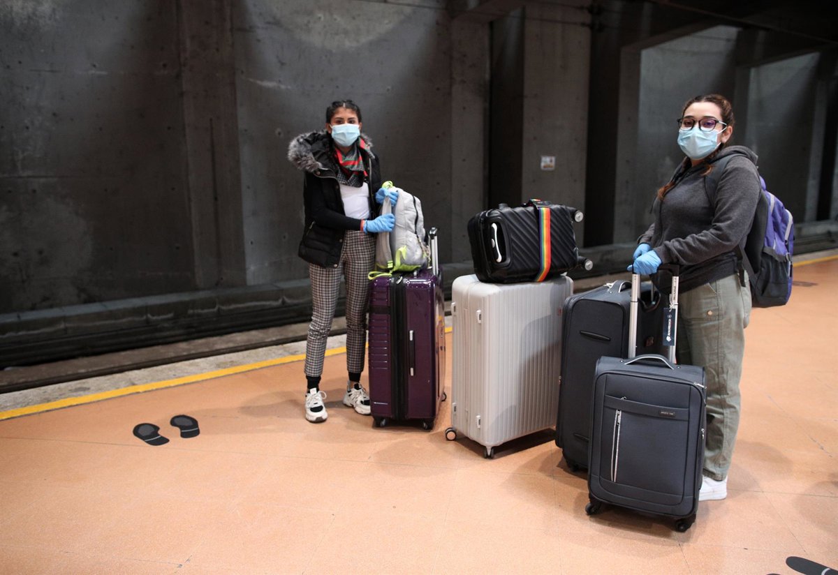 Archivo - Dos jóvenes cargadas con maletas esperan en uno de los andenes de Cercanías de Atocha para coger un tren con dirección al aeropuerto para volver su país de origen, México, en Madrid (España), a 14 de abril de 2020. - Eduardo Parra - Europa Press - Archivo