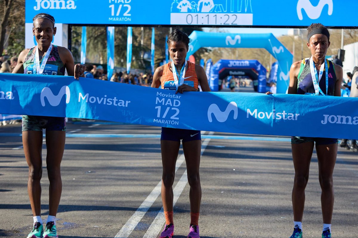 Archivo - La atleta vencedora de la prueba, Zewditu Aderaw (c), la segunda en llegar Alemitu Tareku (i) y la tercera corredora, Ayinadis Teshome (d) - Jesús Hellín - Europa Press - Archivo