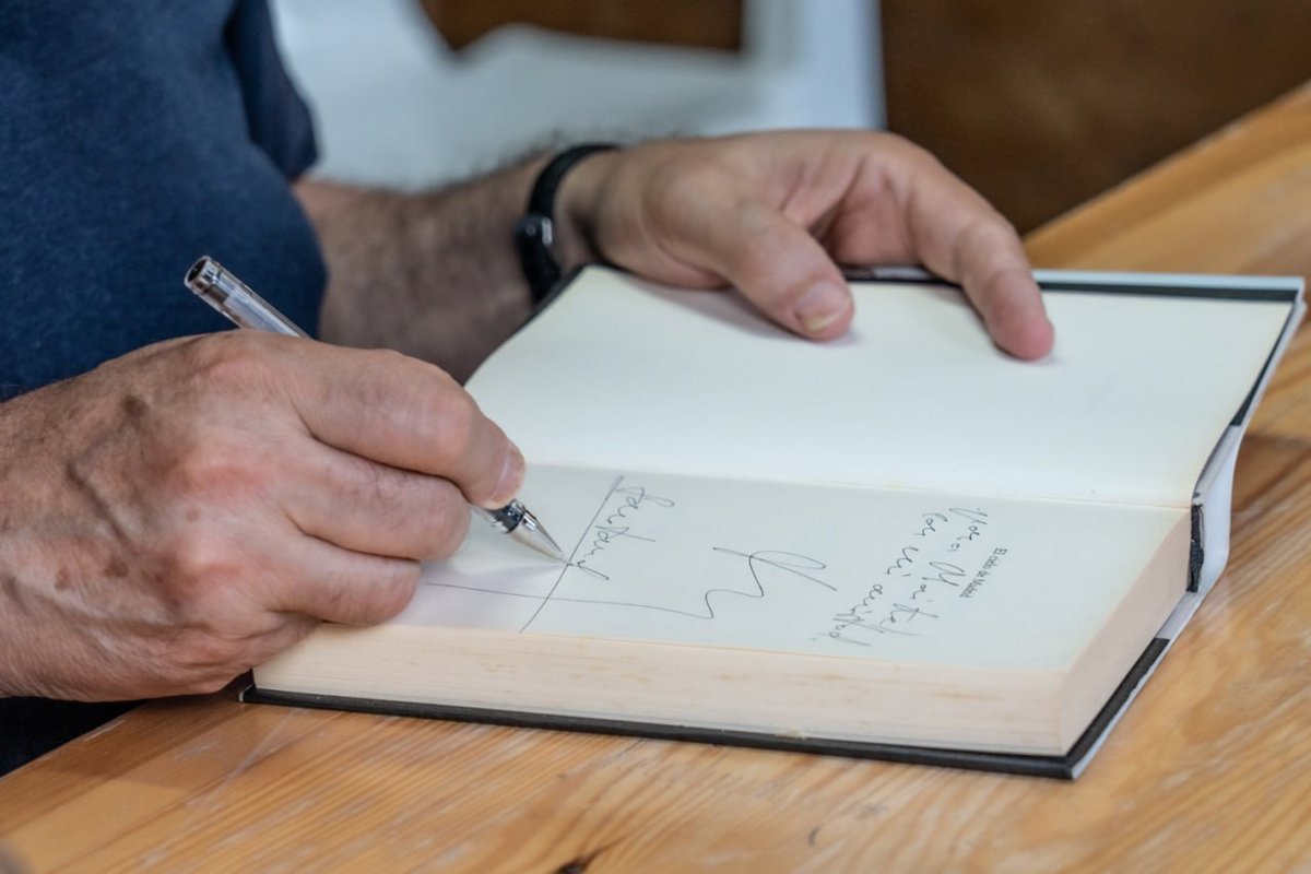 Representada a través de sus textos, la figura del poeta y ensayista era visible desde los pasillos del evento, donde se desplegaron ejemplares de sus libros, registros de más de 50 años de trayectoria intelectual.