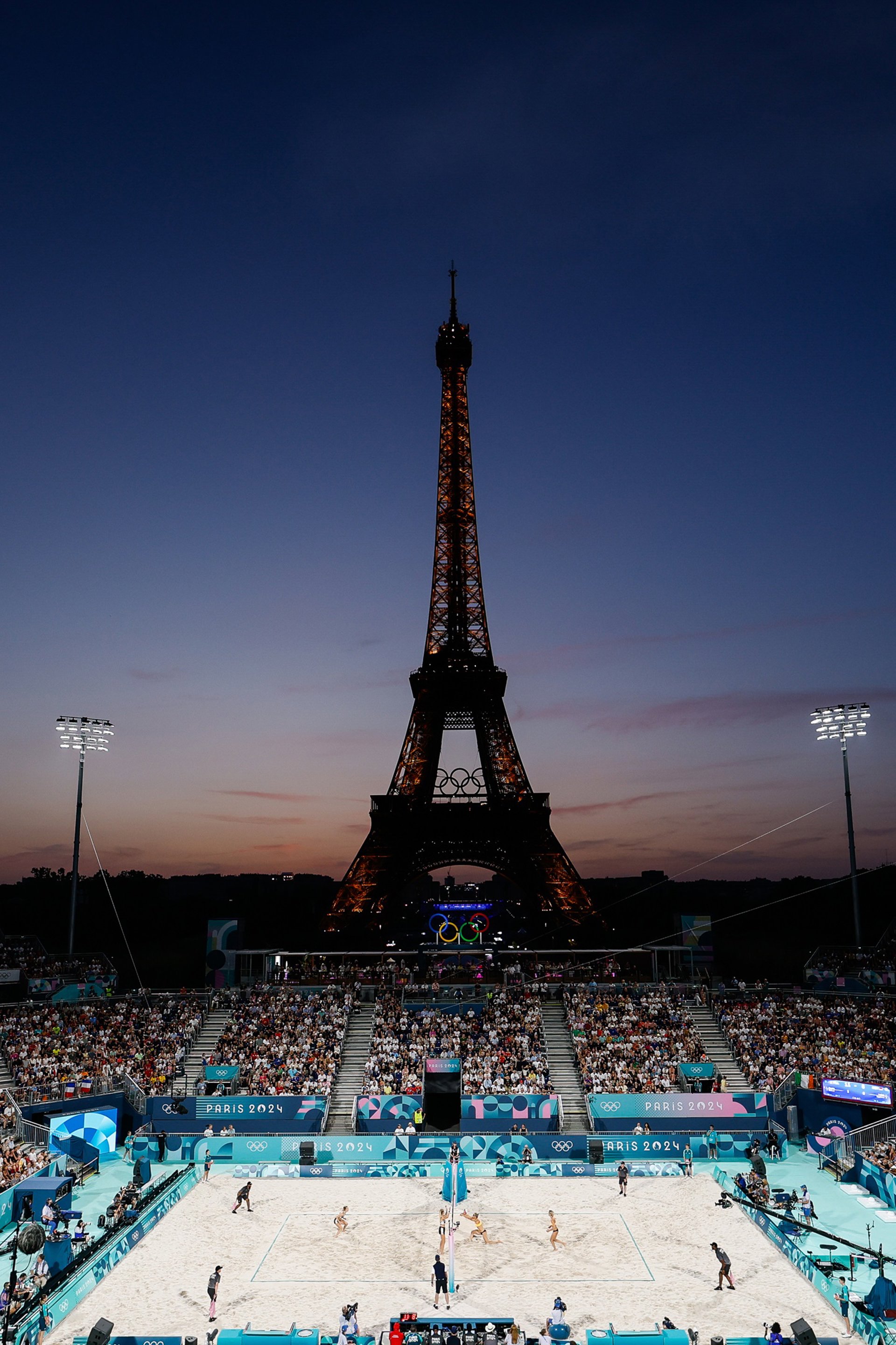General view of Eiffel Tower Stadium during the match between Laura Ludwig of Germany and Louisa Lippmann of Germany against Lezana Placette of France and Alexia Richard of France during the Women's Preliminary Phase. - Manu Reino / AFP7 / Europa Press