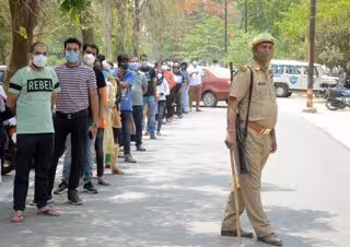01 May 2021, India, Prayagraj: People wait in a queue to receive their first dose of a coronavirus (COVID-19) vaccine at Moti Lal Nehru Medical College. Photo: Prabhat Kumar Verma/ZUMA Wire/dpa - Prabhat Kumar Verma/ZUMA Wire/dp / DPA