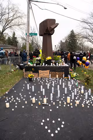 Archivo - Velas y flores depositadas en el suelo frente a un cartel del movimiento Black Lives Matter durante una vigilia en recuerdo de Daunte Wright en el lugar donde fue tiroteado mortalmente. - -/imageSPACE via ZUMA Wire/dpa - Archivo